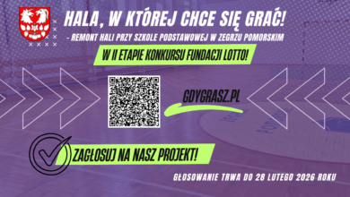 Drodzy Mieszkańcy!Nasz gminny projekt „Hala, w której chce się grać! – remont hali przy Szkole Podstawowej w Zegrzu Pomorskim” przeszedł…