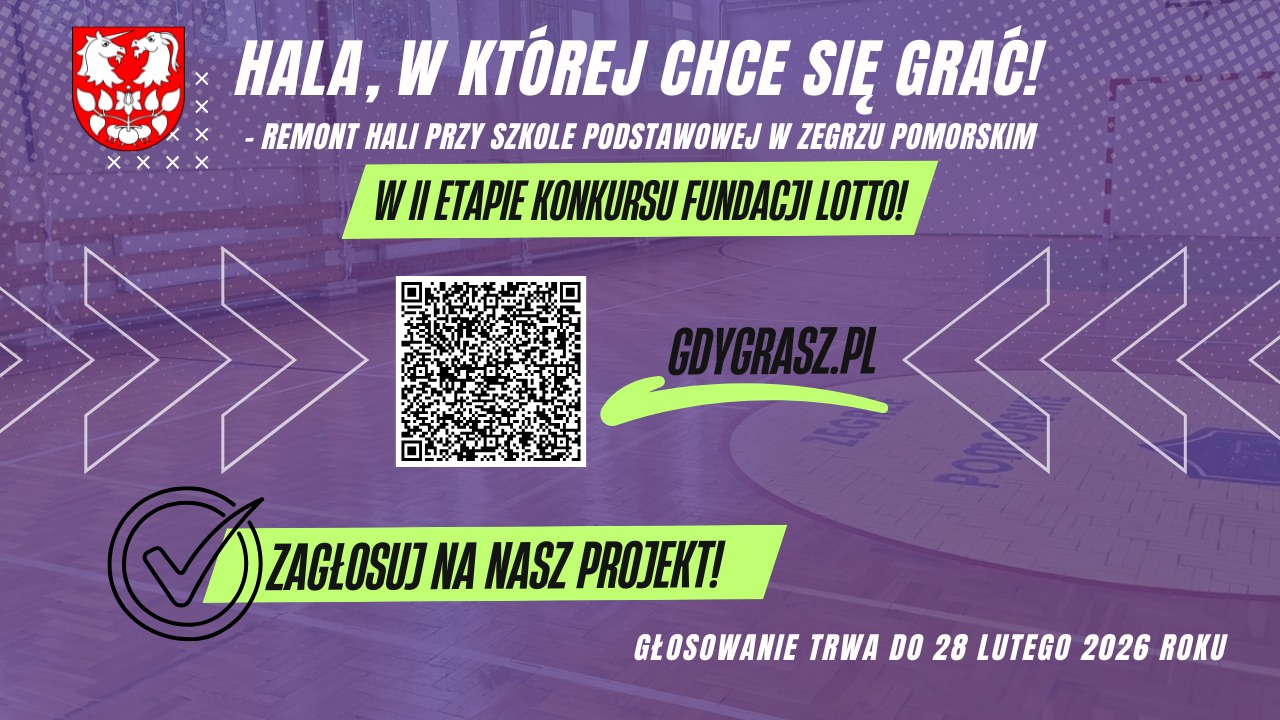Nasz gminny projekt „Hala, w której chce się grać! – remont hali przy Szkoła Podstawowa w Zegrzu Pomorskim” przeszedł do II etapu konkursu Fundacji LOTTO.