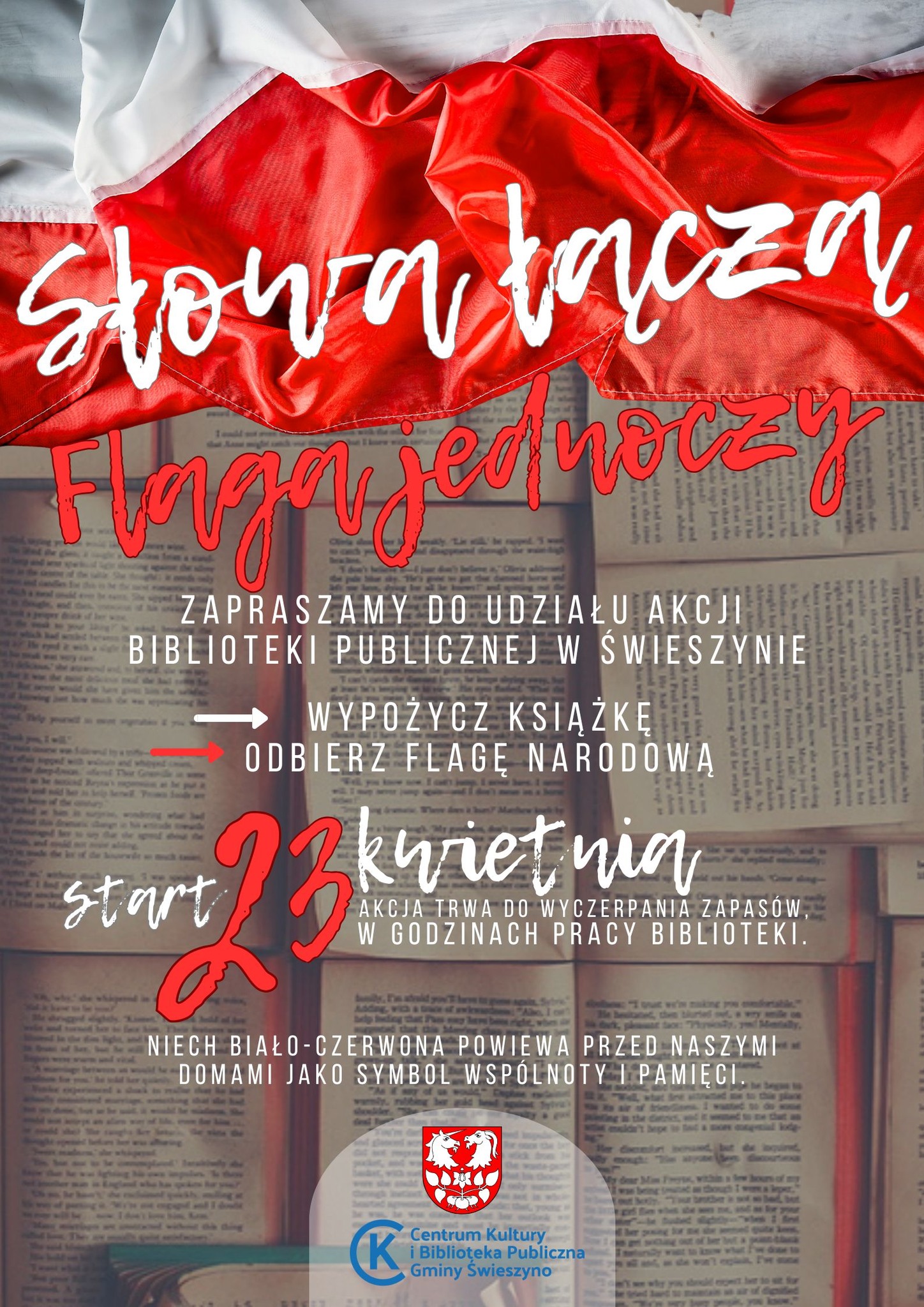 Dołącz do naszej akcji – przyjdź do biblioteki, wypożycz książkę i odbierz flagę narodową!